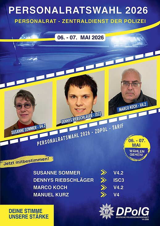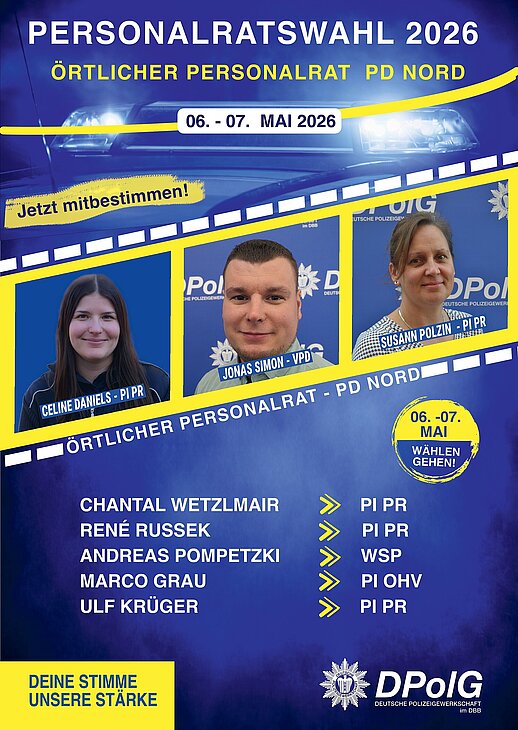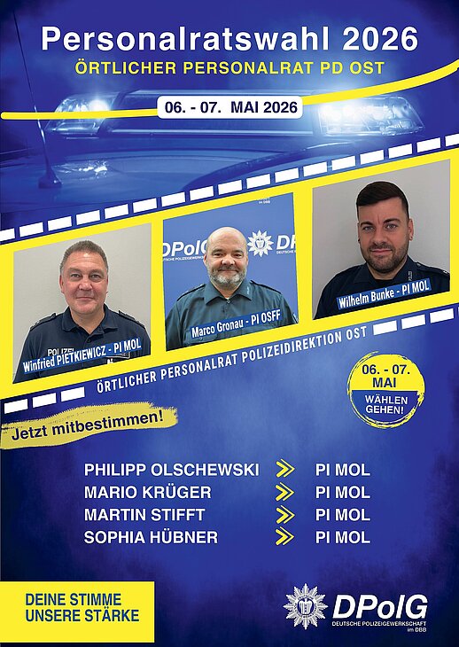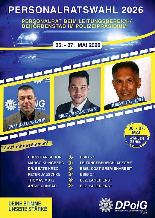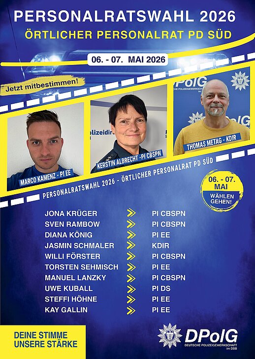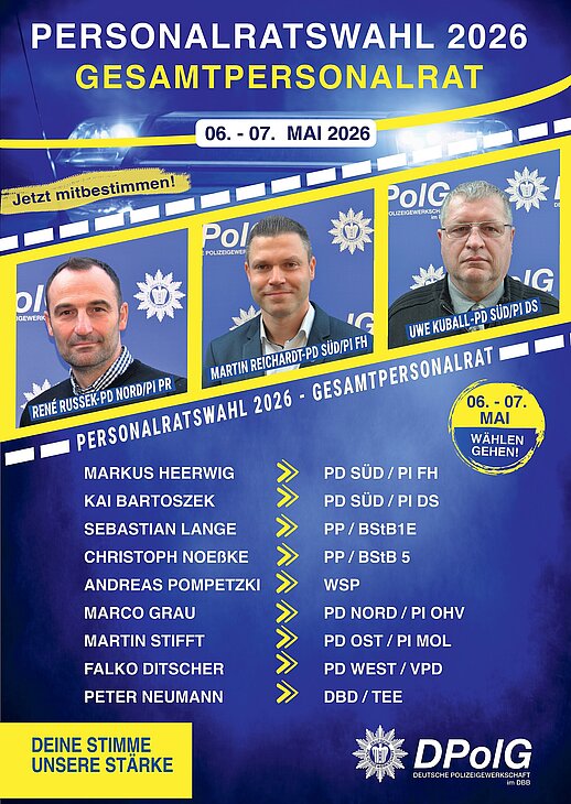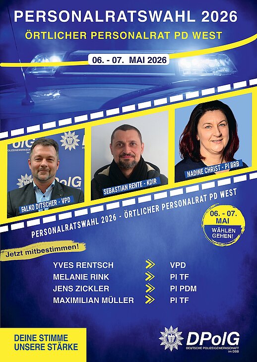 vom 06. bis 07. Mai 2026 finden die Personalratswahlen bei der Polizei Brandenburg statt. Jetzt geht es darum, wer unsere Interessen in den kommenden Jahren gegenüber der Dienststellenleitung vertritt.